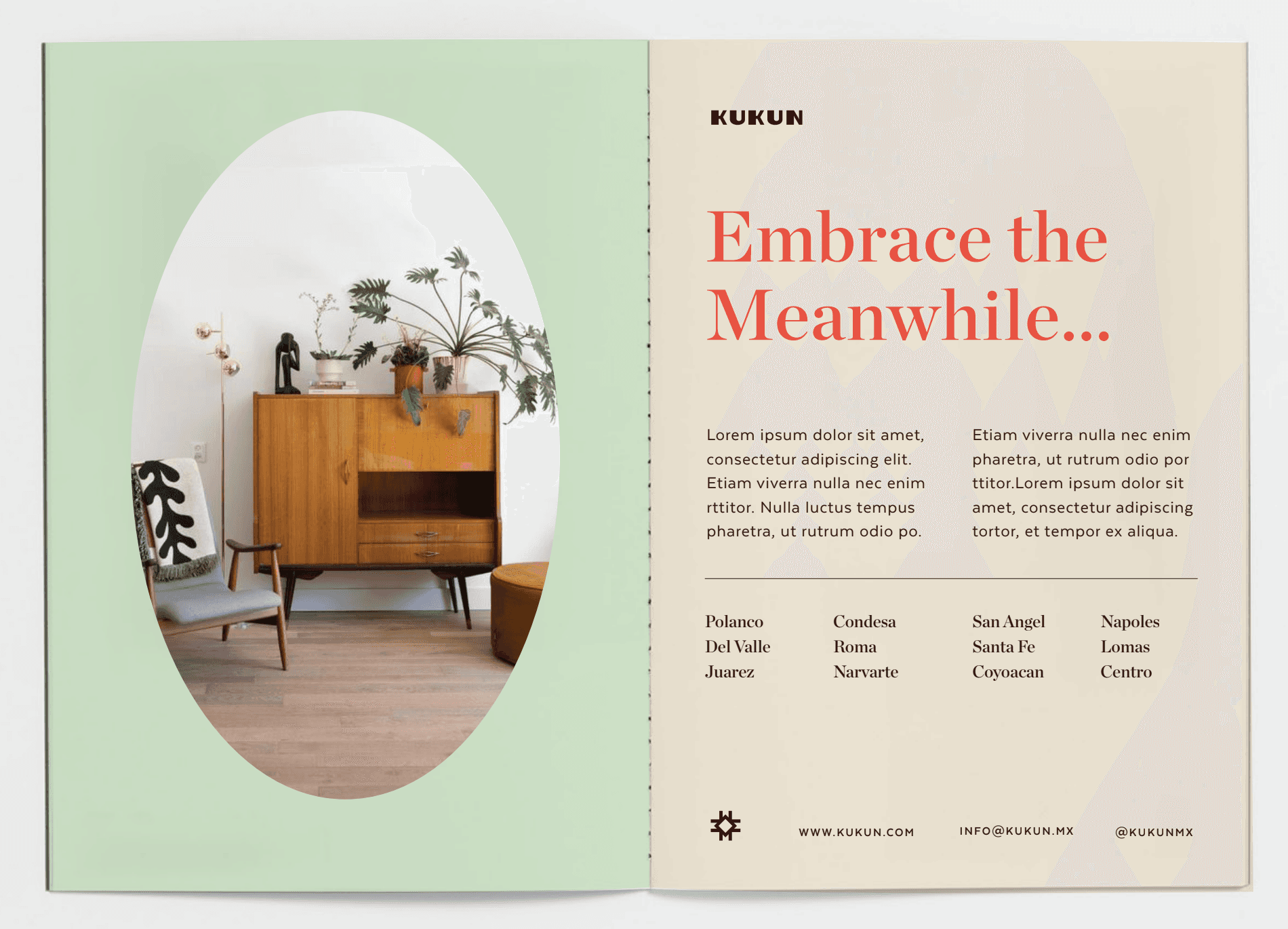 Three founders walked in with a business model and nothing else. We started with a question: what is a temporary home, really? Not a hotel. Not a rental. Something in between — a place you inhabit while you’re becoming someone else. While you figure out the new city, the new job, the new version of yourself. That’s when the cocoon appeared. A caterpillar builds a cocoon not to live in forever, but to transform. It’s temporary by design. And yet — that small, dark, in-between space is where everything changes. The cocoon isn’t incidental to the butterfly. It’s essential. We named the brand Kukun. Spanish speakers hear “cocoon” immediately. Everyone else feels the softness of the word before they understand it. Then we built the story around a single line: Embrace the meanwhile.